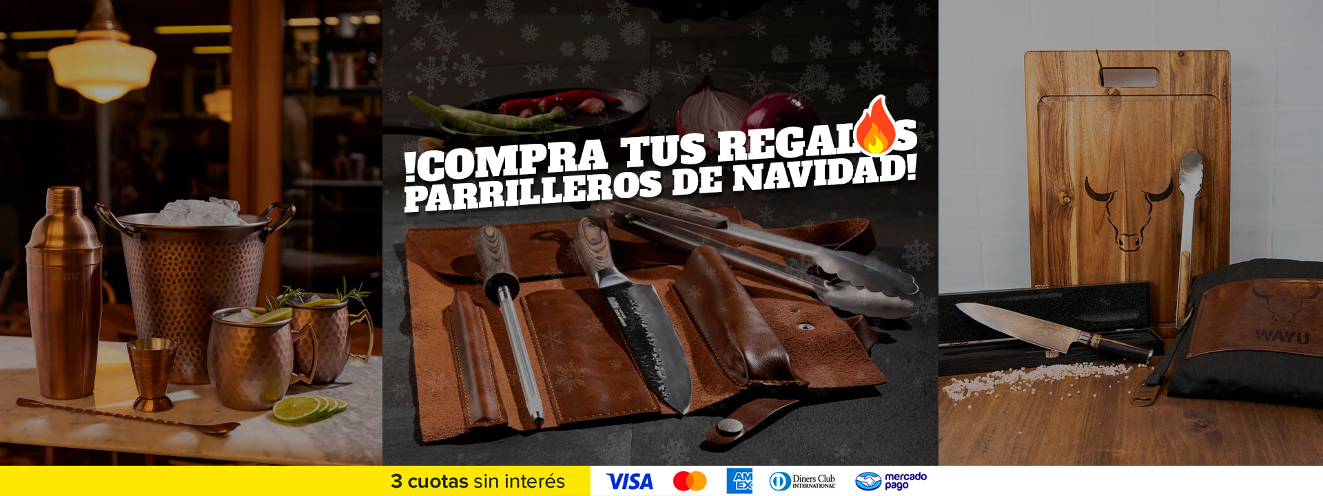 🔥Parrillas 🔪Cuchillos ⭐Pecheras 💼Portacuchillos 🪵Tablas 🍳Hierro Fundido 🍷Vasos y Copas 🧤Accesorios 💨Ahumadores 🎁Regalos ⚽Futbolero
